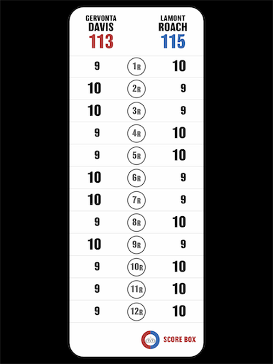 どこか遊びながらやっているような立ち上がりのタンク・デービス。いつもならこの調子でKOまで持って行くのだが、今日のローチの集中はそれを許さない。先に手を出し、タンクの強打にもビビらずにカウンターを合わせる。そして問題の9R、ローチのジャブを受けたタンクが自らヒザをつく。そして自コーナーに戻ってタオルで顔を拭く(髪を固めるグリスが目に入ったと試合後に釈明)。カウントをとり始めていたレフェリーは途中で止めて、ダウンは取らなかった。結局判定はタンク1-0の引き分けだったのでこれがダウンだったらローチの勝利だったことになる。再戦は必至だろう。