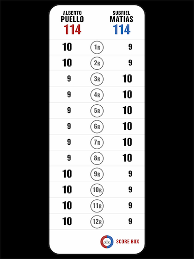 立ち上がり、マティアスのプレスをかわすべく左回りしながら忙しく手を出していたプエジョだったが、手数の落ちた中盤はマティアスの連打をロープを背にして耐える場面が増え、後手を踏み続ける。いよいよ後がなくなった終盤はまた手数で追い上げたが及ばす0-2でマティアスの勝利。WBCスーパーライト級タイトルを獲得したスブリエル・マティアス。前戦まで22勝2敗22KOという高いKO率の割にはパンチにそこまでの決定力は感じられない。その代わり手数が出てプレスが物凄くキツい。相手が動いても動いても常に至近距離正面から手を出して来る。圧迫感はハンパではなさそうだ。ただ激戦区のこの階級でどこまで存在感を高められるかは未知数。